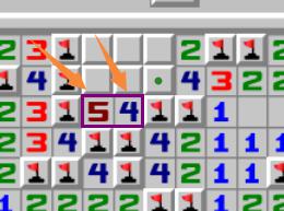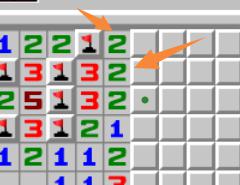 橙色箭头所指的2,周围已有1个雷通过其他方式判出,因此真实数字为1。