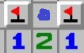 比如图中,3周围有两个雷3-2=1,2周围有一个雷2-1=1,故简化为11模式,画点的两个格子可以直接打开。